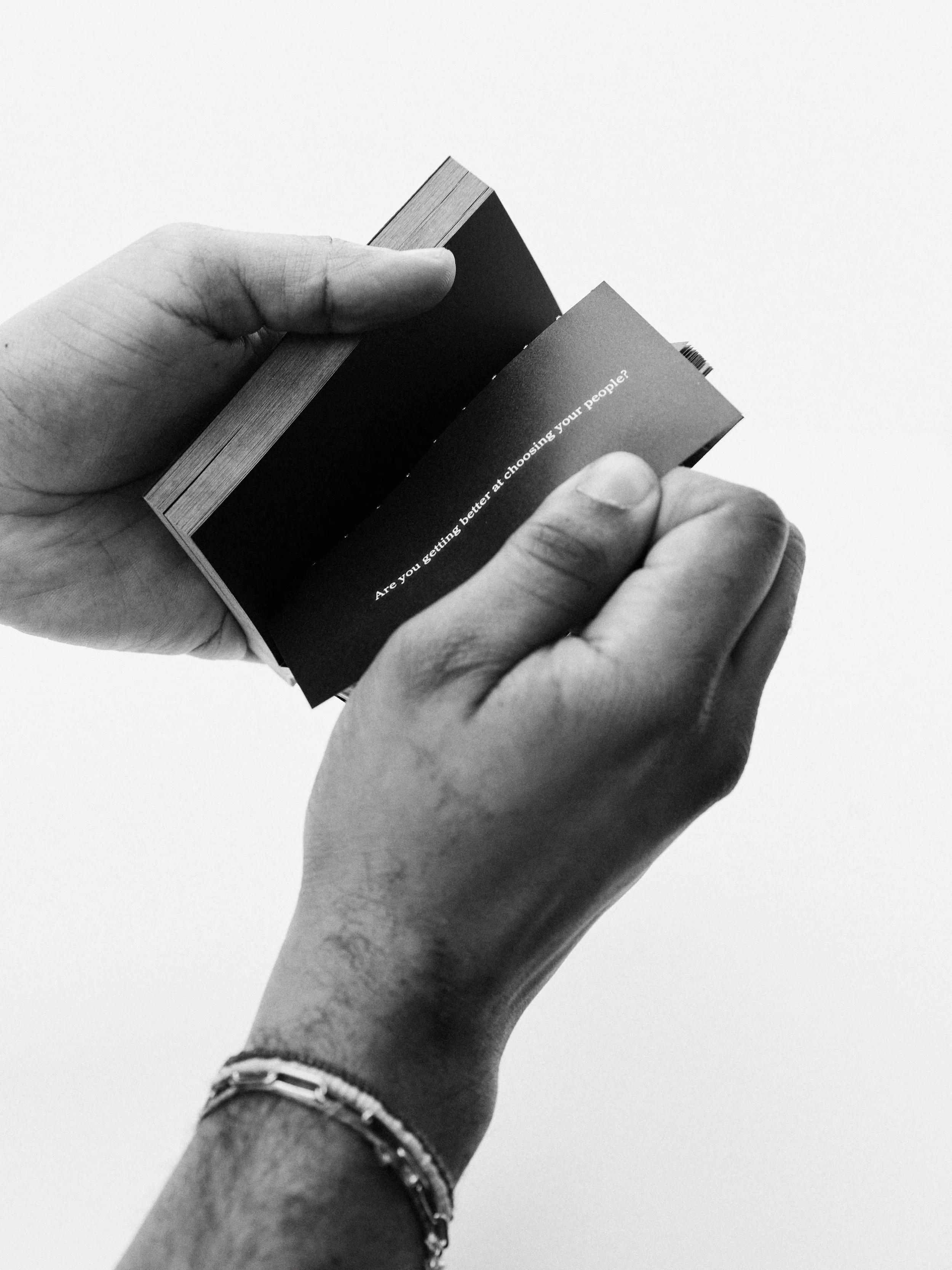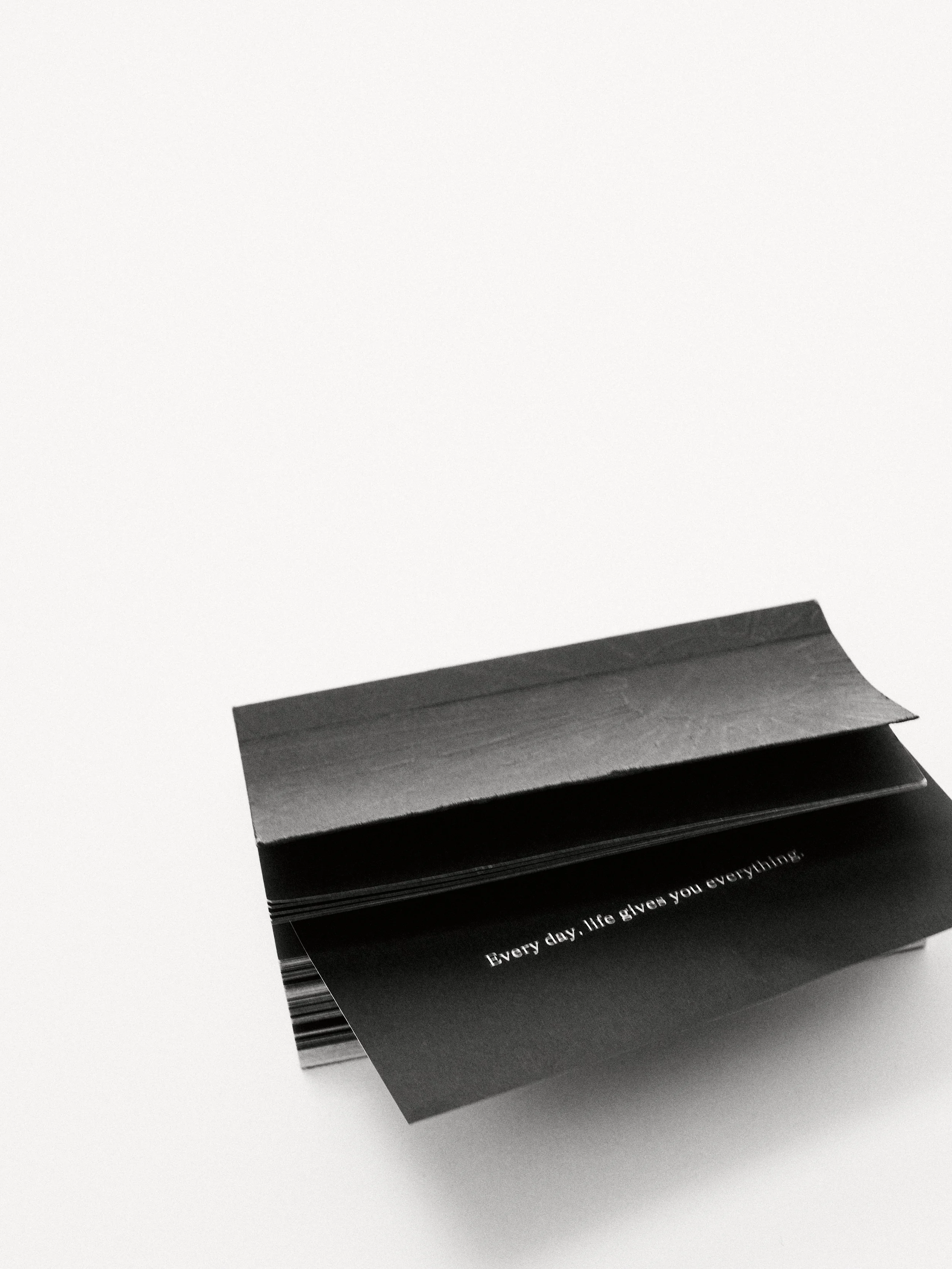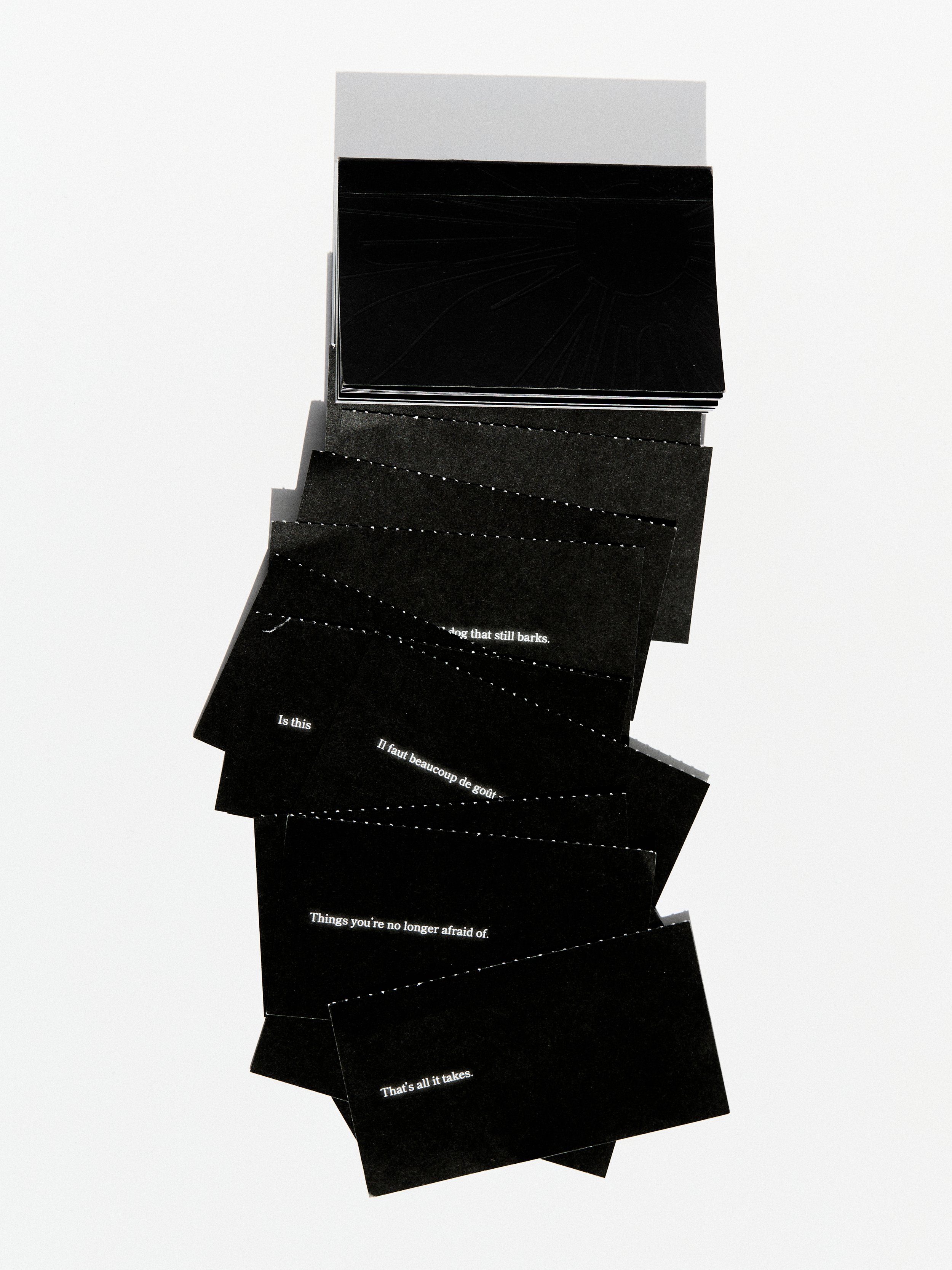 Ask yourself a question Tear out a random page get 2 books — 25€ 1 for you + 1 for a friendships in 48hrs what will be your first page? how it works 1.think of a question: focus on something or someone that’s been on your mind lately.2.tear out a random page.3.read it and revisit your question not answers.reflections. read the full story here pocket-sized200+ pages shipping worldwide the packaginga matte black envelope.two books inside25 eur. a meaningful gift for whoever just crossed your mind Slide 1 Slide 1 (current slide) Slide 2 Slide 2 (current slide) Slide 3 Slide 3 (current slide) Slide 4 Slide 4 (current slide) Slide 5 Slide 5 (current slide) Slide 6 Slide 6 (current slide) Slide 7 Slide 7 (current slide) Slide 8 Slide 8 (current slide) Slide 9 Slide 9 (current slide) some people who have one 1 / 20 ParisOsloFort-de-FranceStuttgartAbidjanCopenhagenNew York SeoulPointe-à-PitreLos AngelesTokyoMumbaiLisboaGaborone send us a message on instagram and get free shipping@petitssacrifices this book won’t fix anything. but it might shift something. and sometimes that’s enough. get 2 books — 25€